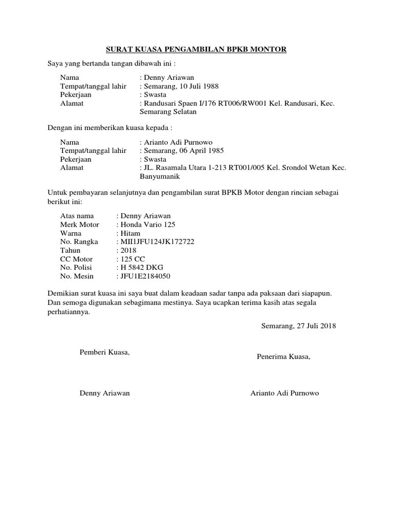 Contoh Pembuatan Surat Kuasa Pengambilan Bpkb Motor – ID.Lif.co.id